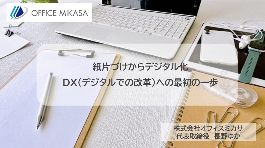 タイトル紙片付けからのデジタル化「DX(デジタルでの改革)への最初の一歩」