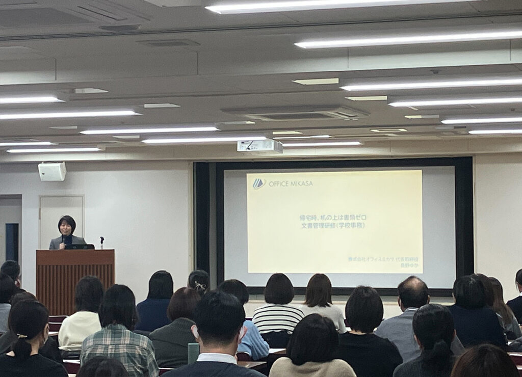 | 研修タイトル | 帰宅時、机の上は書類ゼロ文書管理研修(学校事務) |